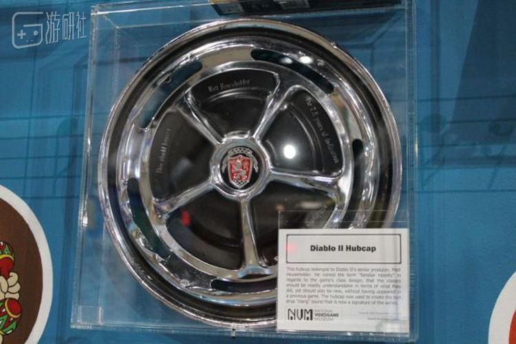 这个展区中最引入注目的展品大概要算这个暗黑破坏神的主题轮毂了。当年暴雪的音效师就是反复对这个轮毂进行敲击,来模拟早期暗黑游戏中刀剑交格的声音。比如那一下经典的掉宝声,就是这个轮毂的功劳。这让人记忆深刻的哐当一声后来成了暗黑系列沿用至今的一大招牌特色。