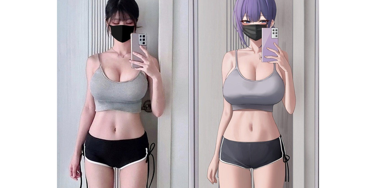 但这并不是因为Biya的画功又在短时间内有了什么突飞猛进,而是她在推特上传了几张生活照,不仅让关注者们注意到她是个身材热辣的女画师,还发现其衣着打扮酷似她此前绘制的自创角色YUNA,甚至连肩头和前腰的蝴蝶纹身都忠实复刻。