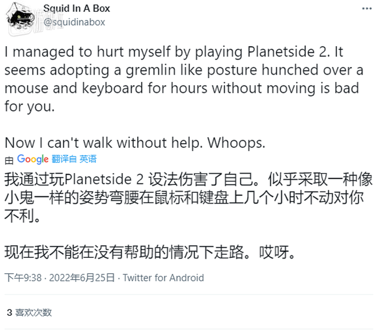 但罗伯的健康情况再度急转直下。6月25日,因为沉迷《行星边际2》,罗伯久坐了好几个小时,伤到了自己,害得自己无法在没有外界帮助的情况下走路。那天的推文成了罗伯在社交媒体上留下的最后痕迹。