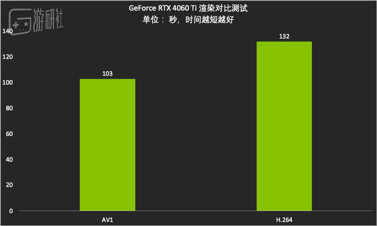 除了这些侧重娱乐的功能外,GeFoece RTX 4060 Ti也将是创作者们的绝佳好搭档。在剪映的视频剪辑转码处理测试中,可以看出使用AV1编码器渲染导出视频的时候,相比传统的H.264的速度更快,且渲染出来的文件体积耶更小。而这对于创作者来说可以更好的节约等待的时间以及电脑硬盘的存储空间。