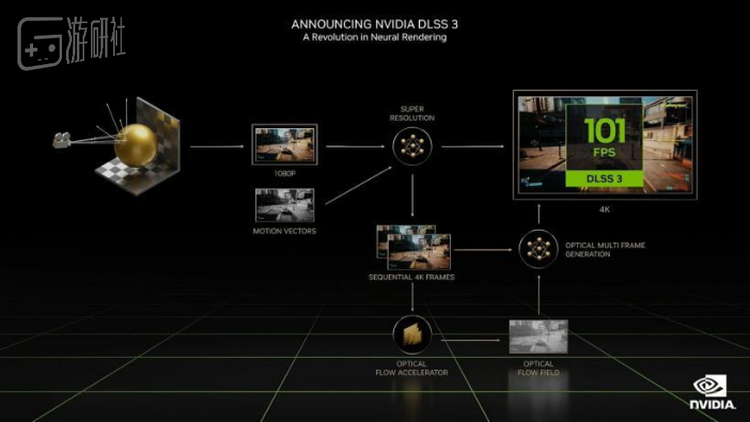 而早已成为游戏玩家使用RTX系列GPU时标配的DLSS技术,同样是RTX 40系的一个优势。DLSS是AI驱动图形领域的革命性突破,可大幅提升性能,利用AI和GeForce RTX Tensor Cores重建其余的像素,来提高帧率,同时提供可与原生分辨率相媲美的清晰、高质量的图像。该技术通过AI加速超级分辨率,达到拥有极高分辨率和超高质量的双重体验,并且能带来高于传统渲染4倍的性能和超快的响应速度,在游戏中为玩家们带来成倍的帧数提升。